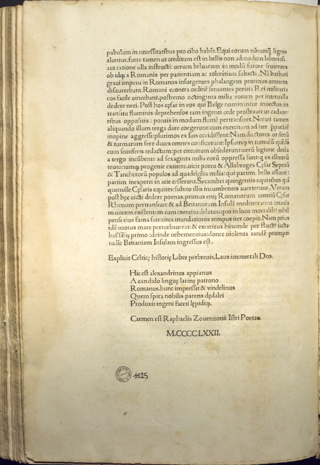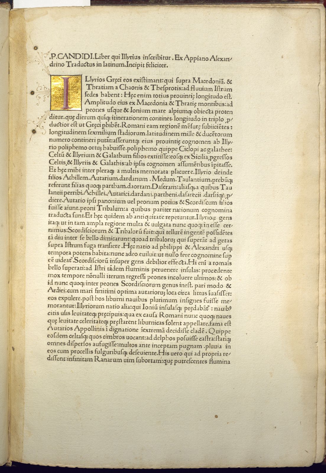 Appiani Alexandrini Romanarum Historiarum.[Venetiis: … impressit & vindelinus quem spira  nobilis parens… ] 1472
