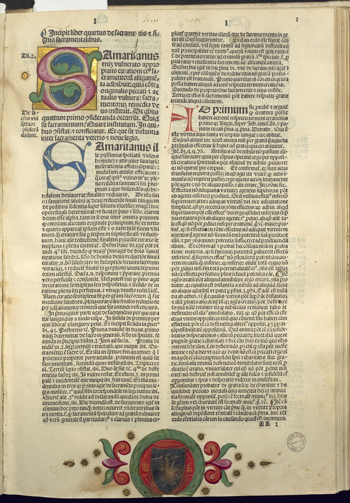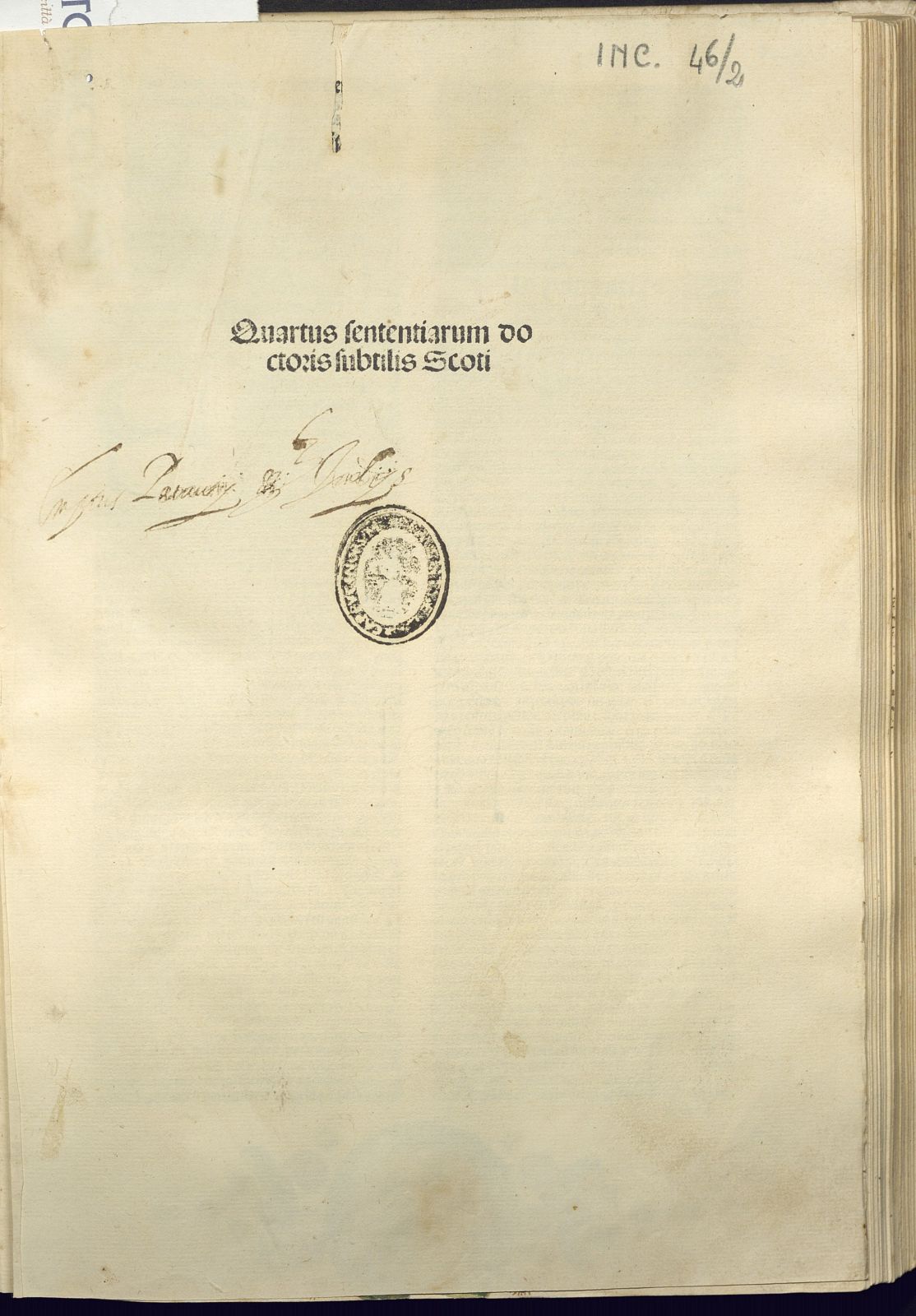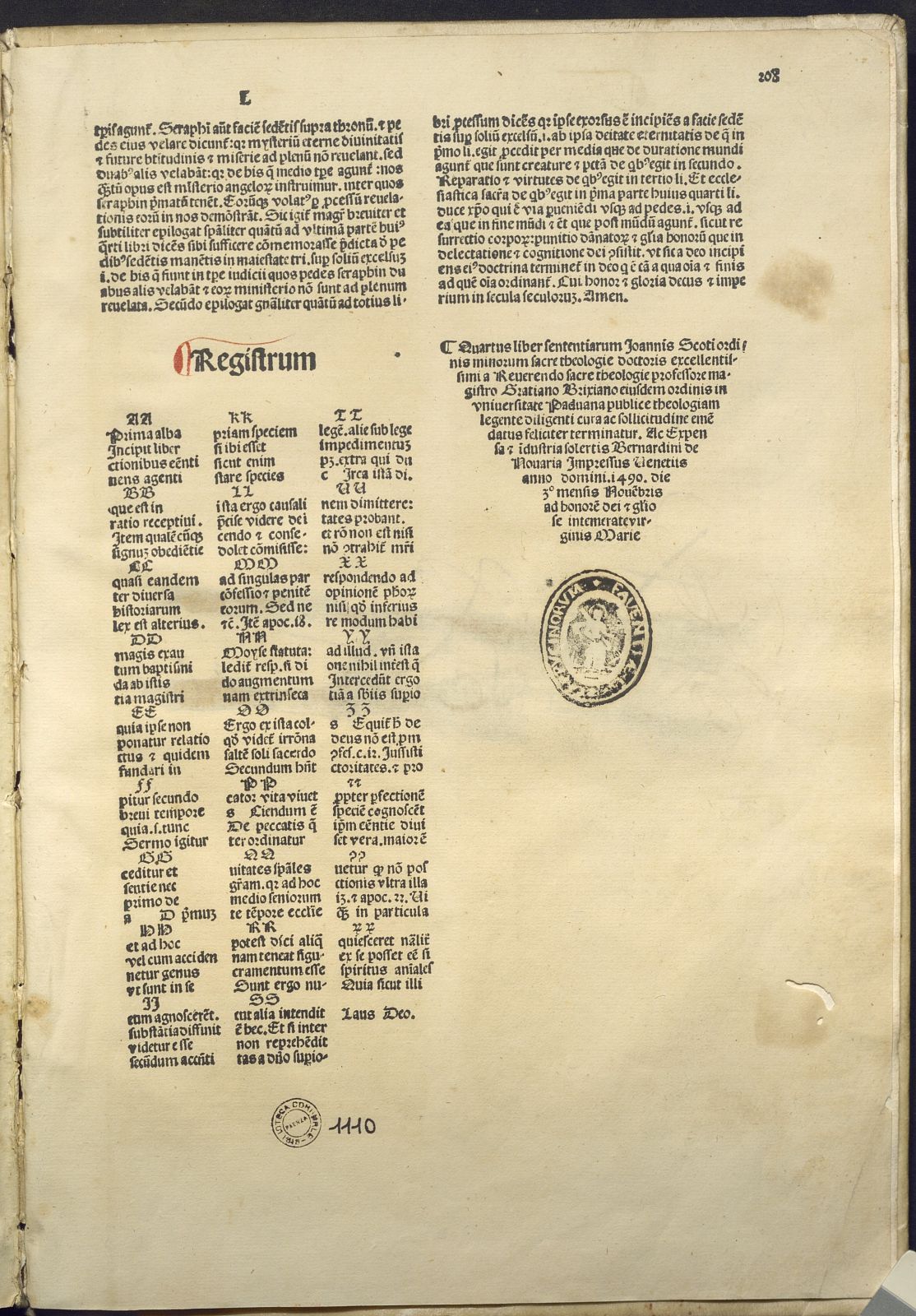Quartus sententiarum doctoris subtilis Scoti. (Impressus Venetiis : ac expensa et industria solerti Bernardini de Nouaria, 1490 die tertio mensis Nouembris…)