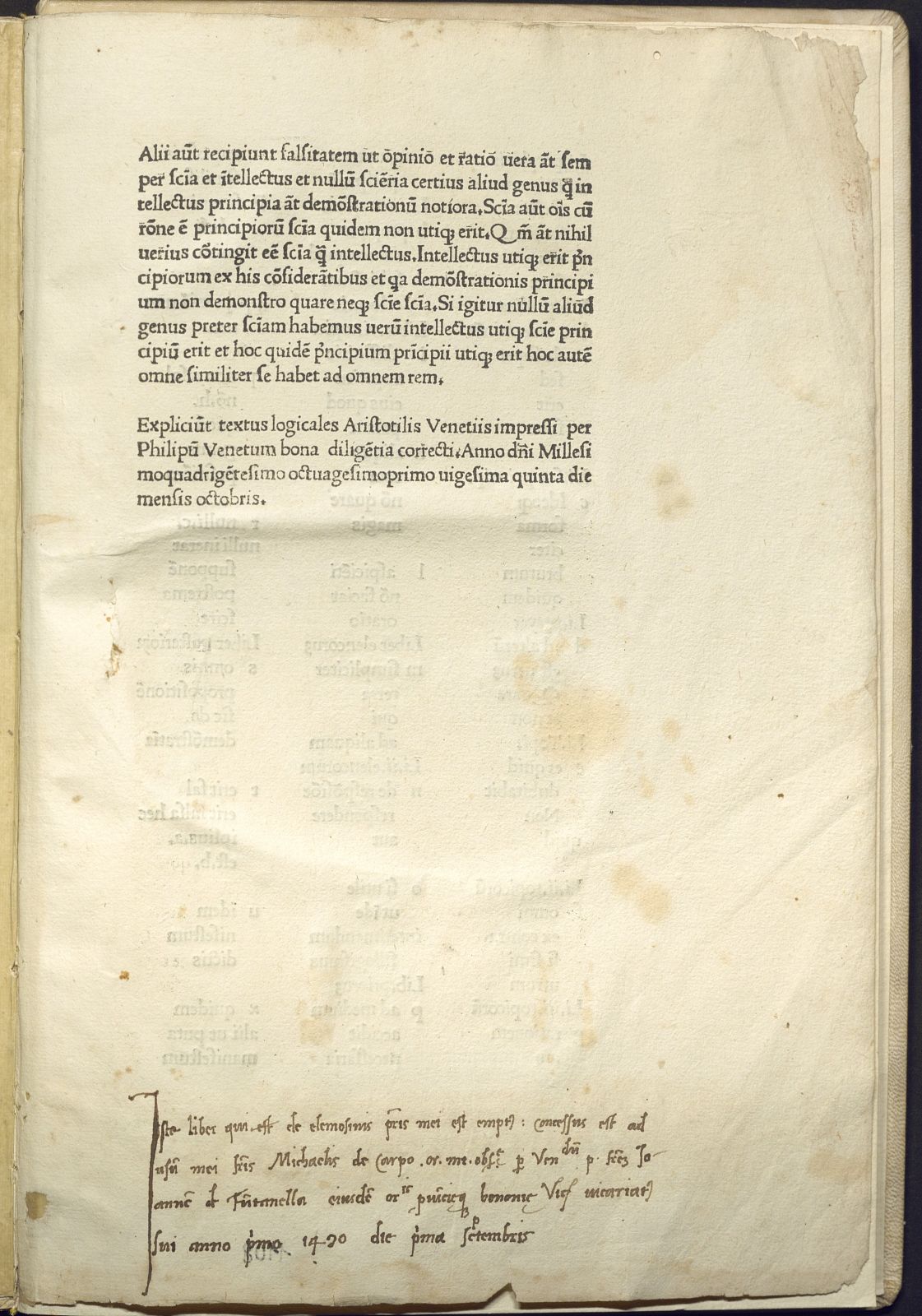 Expliciunt textus logicales Aristotilis [!] (Venetiis : impressi per Philipum Venetum, 1481 uigesima quinta die mensis octobris)