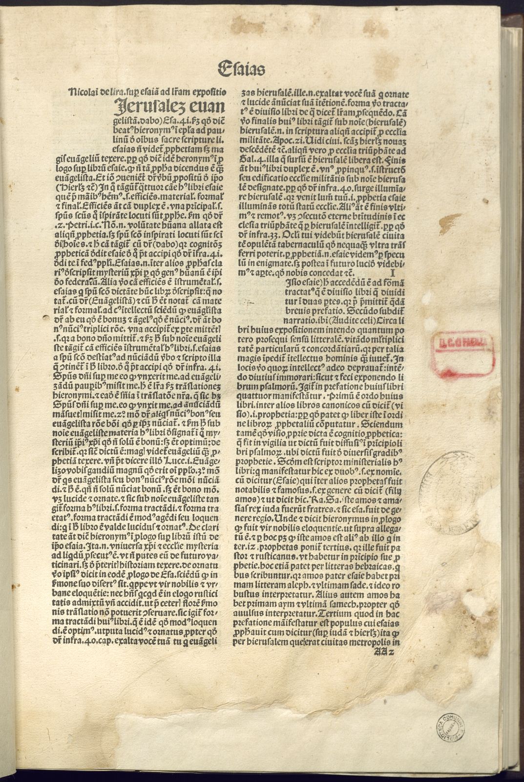 Caratteri gotici, testo su due colonne, spazi bianchi per capilettera, Segnatura: AA-YY¹⁰ ZZ⁸ &&⁸