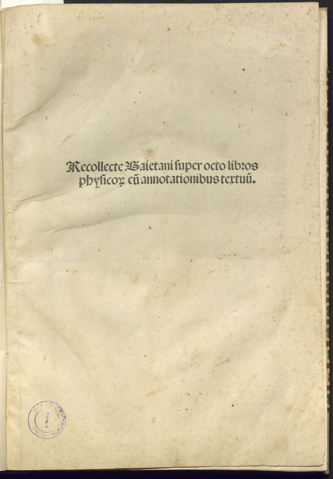 Gaietani de Thienis Vincentini philosophi preclarissimi recollecte super octo libros physicorum Aristotelis