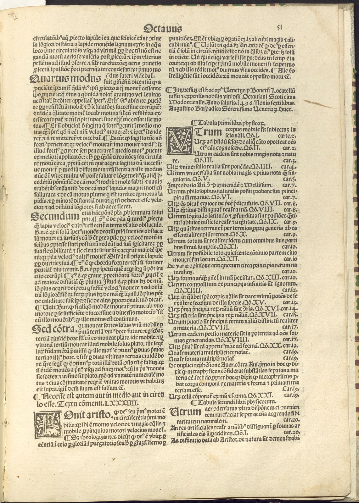 (Impressum est hoc opus Venetijs : per Bonetum Locatellum et expensis nobilis viri domini Octauiani Scoti ciuis Modoetiensis, 1496. Nonis sextilibus [5.VIII])