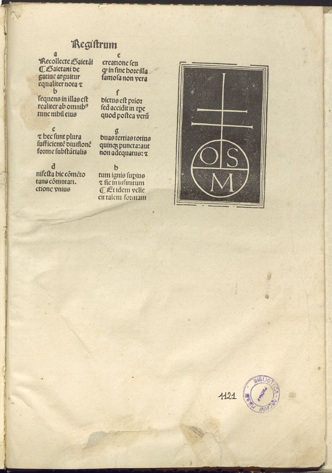 Caratteri gotici, testo su due colonne, capilettera silografici, marca tipografica in fine, Segnatura: a8 b-g6 h8