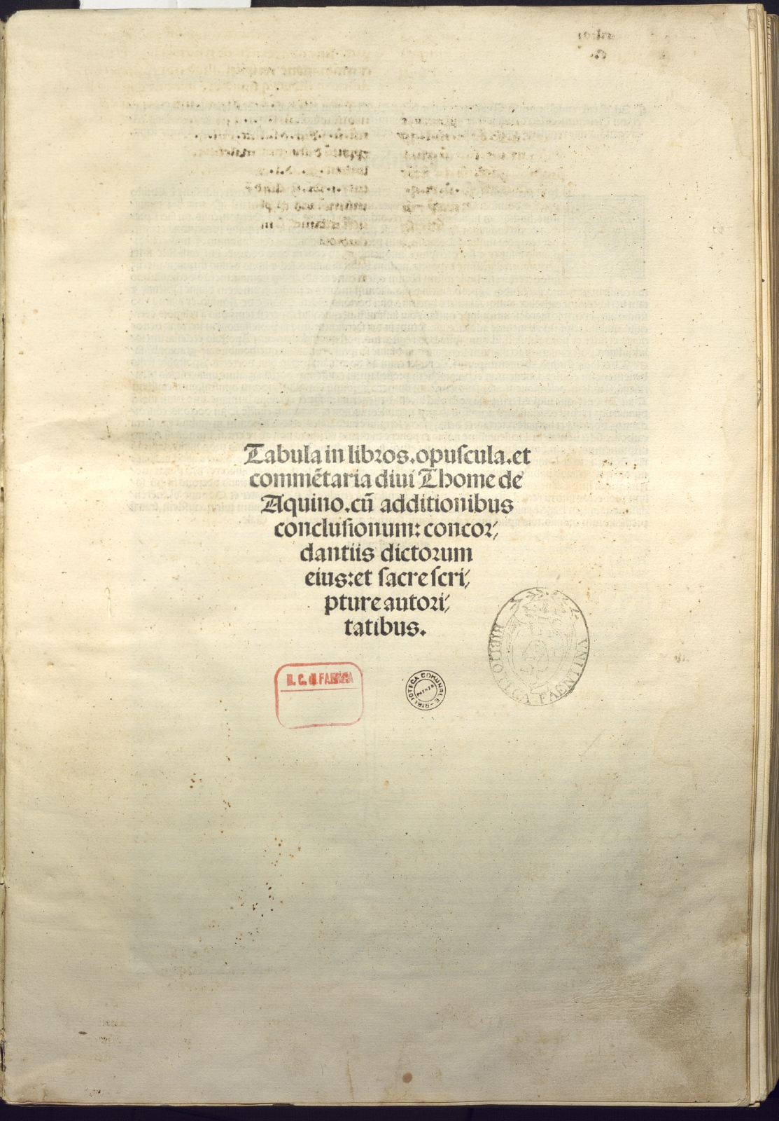 Tabula in libros opuscula et commentaria diui Thome de Aquino cum additionibus conclusionum: concordantiis dictorum eius: et sacre scripture autoritatibus